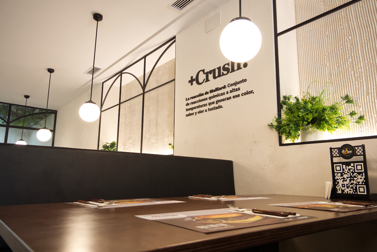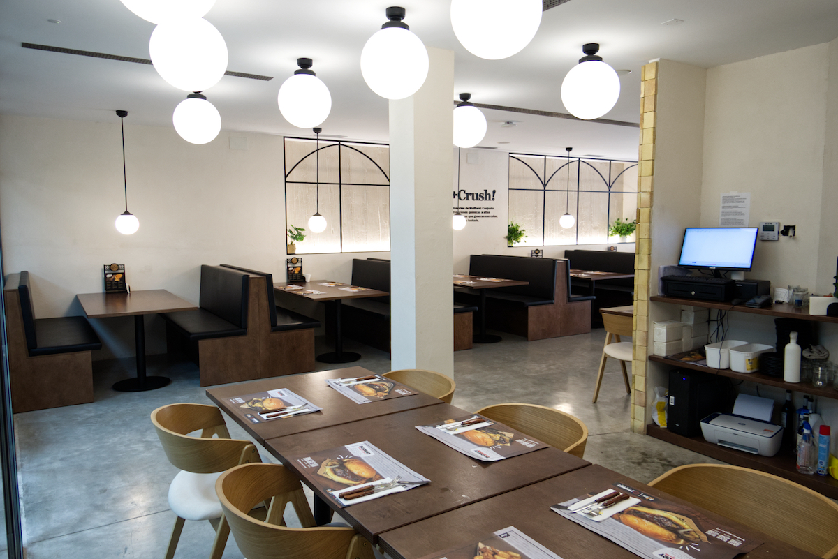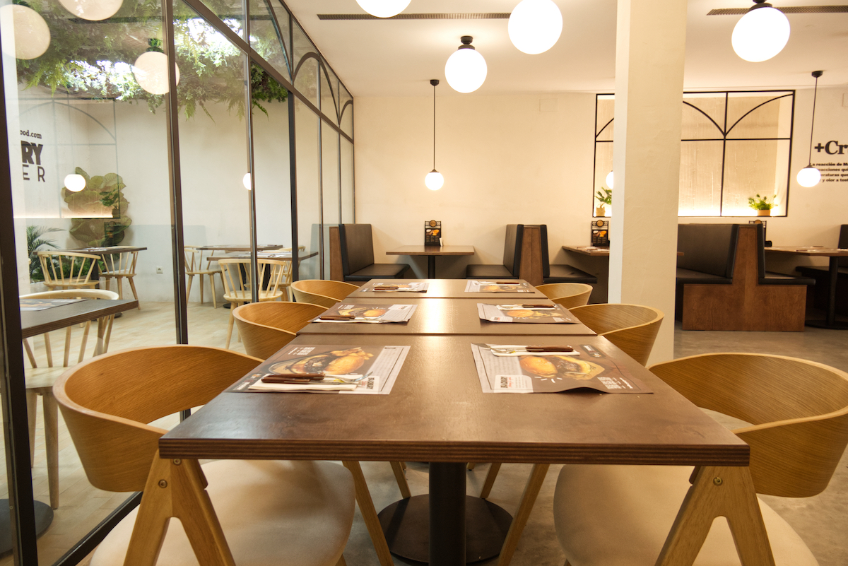El local tiene un ambiente rústico, moderno y acogedor, se disfruta de luz natural y de una zona interior que te ubica en una zona ajardinada interior que rompe con lo que te esperas.