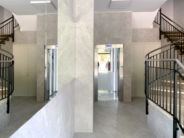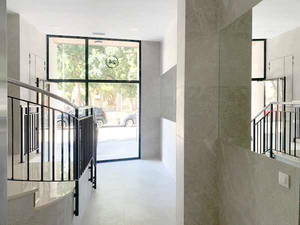 Reforma integral zaguán con eliminación de barreras arquitectónicas con instalación de ascensor a cota 0 de la marca OTIS.