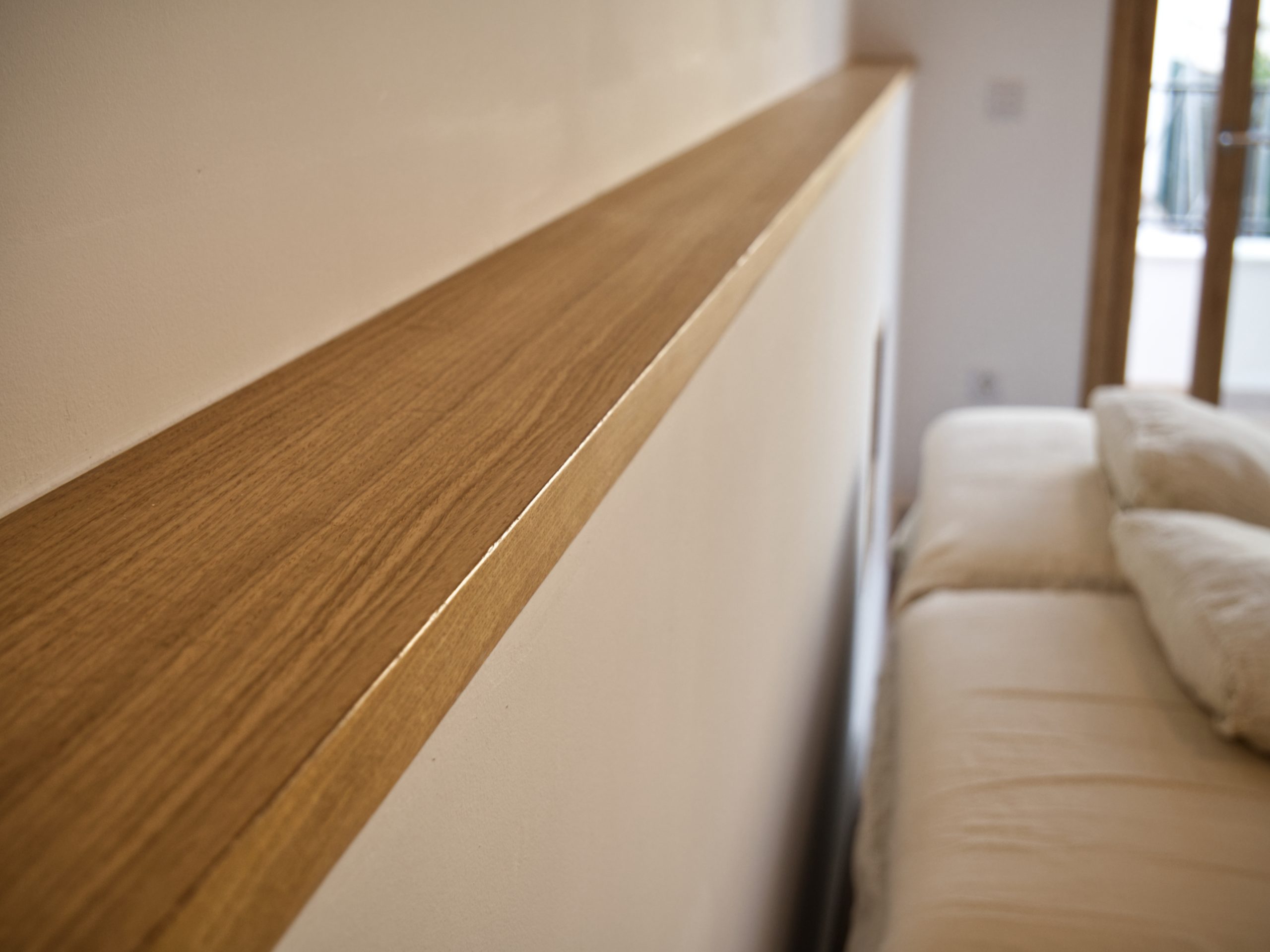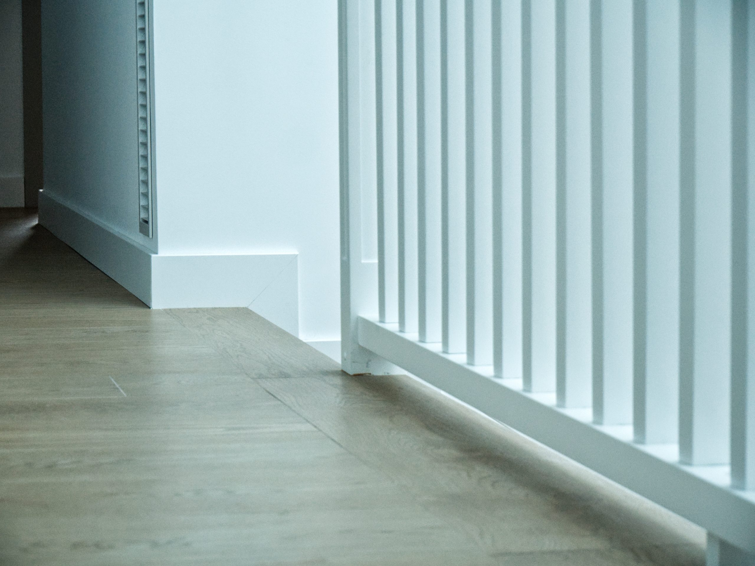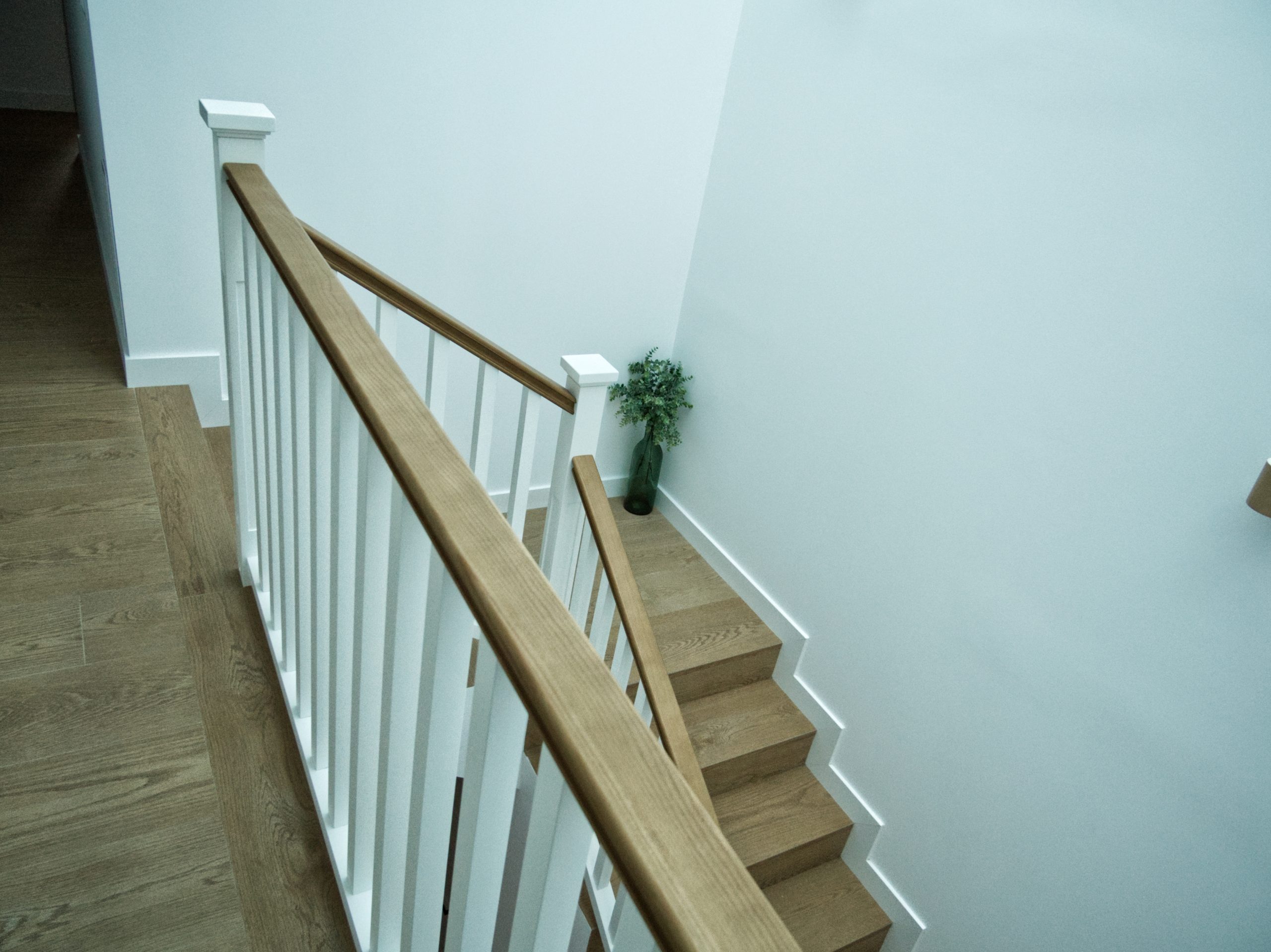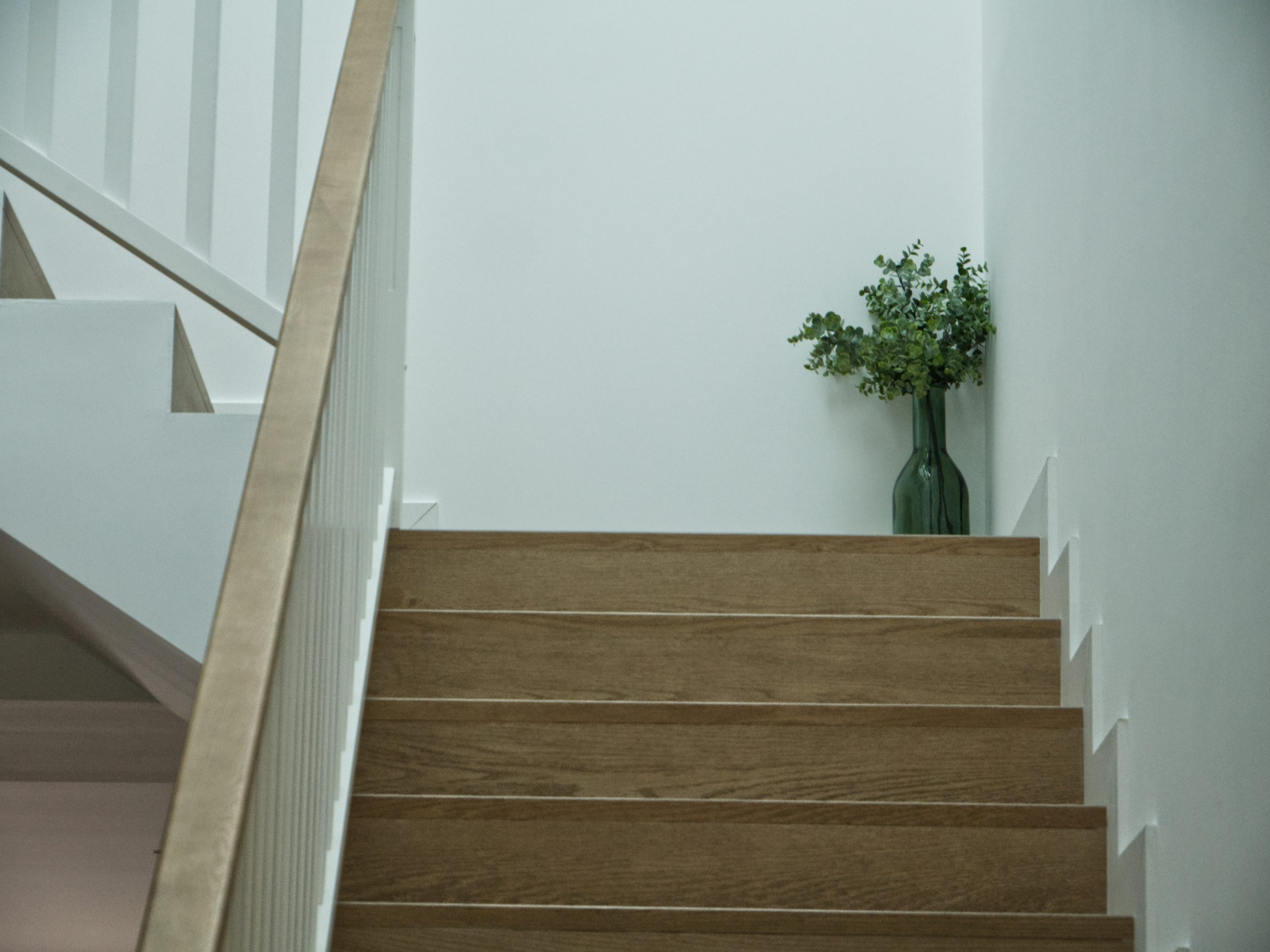 La vivienda se articula a través de un espacio central en doble altura donde se sitúa una amplia escalera bañada por la luz cenital procedente de un imponente lucernario que introduce la luz natural y simula el cielo abierto.